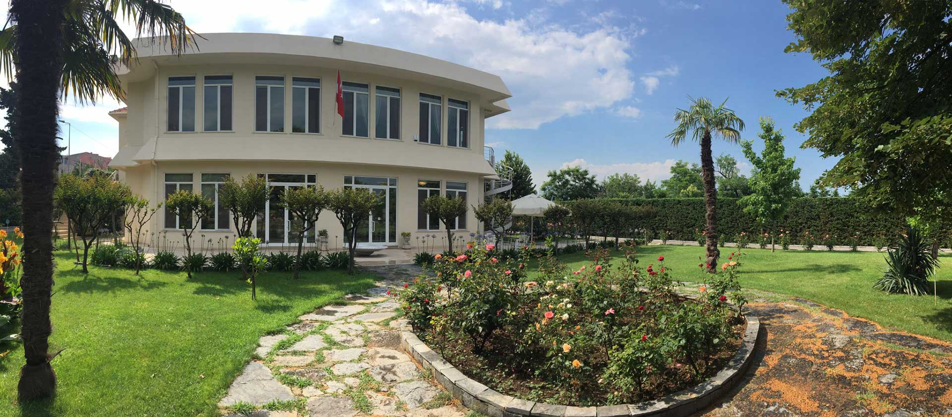 Touring Central Office is a campus built on an area of 10,208 m² in Seyrantepe in 1994 due to the inadequacy of its old building. There are 5 buildings in total within the campus. The first building includes accounting, law and culture and arts project offices. Within the main building appears the conference hall with a capacity of 150 people, the Touring Library with more than 15 thousand books and Triptyque services. The other 2 separate buildings houses 10 classrooms equipped with modern materials and a physician's room. Besides, the guests can eat and have a chat in the Pink and Green Houses in the garden.