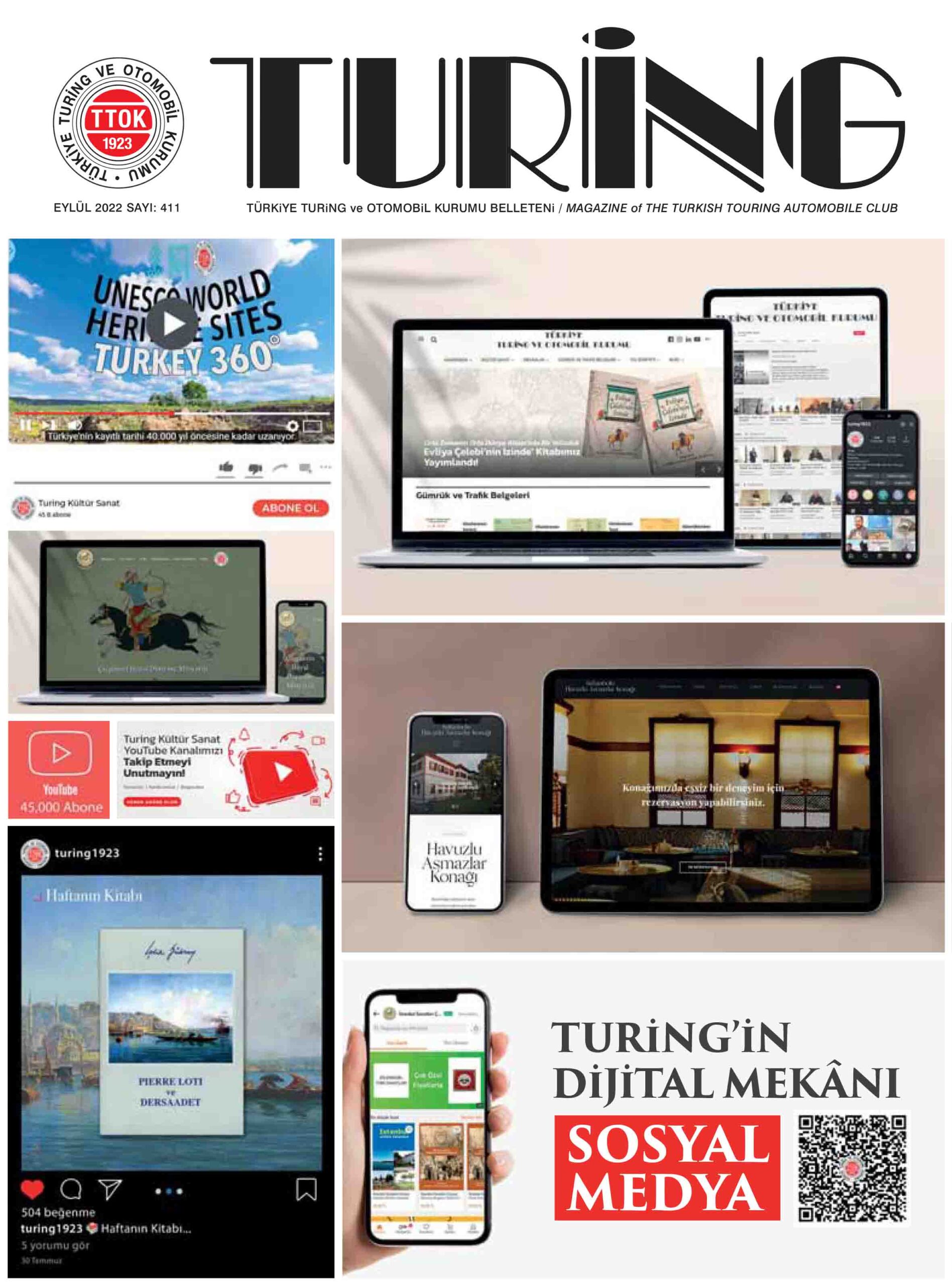 Cumhuriyetimiz ile yaşıt olan Turing’in ilk kez 1 Ağustos 1930 yılında Fransızca olarak yayımladığı “Türkiye Turing ve Otomobil Kurumu Belleteni” aynı zamanda Türkiye’nin en uzun soluklu dergilerinden birisidir. Turing Dergisi’nde başlangıçta; tarih ve kültür ağırlıklı, kaynak niteliğindeki yazılar yer alırken sonraları bu yazılara turizm, trafik mevzuatı gibi hukuki temalı yazılar ile Turing bölümleri eklenmiştir. Günümüzde ise; Türkiye ve dünyadan farklı gezi yazıları, mimari, nostalji otomobil serileri, otomobil tanıtım yazıları, kurum üyeleri ile yapılan sohbetleri, Turing hizmetlerini içeren haberleri, kültür-sanat başlıklı konuları ve İngilizce özet içeren sayfaları ile üç ayda bir Türkçe olarak neşredilmektedir. Turing Dergisi üyelerimiz ile kamu kurumlarının yanında tüm üniversiteler ve kütüphanelerin süreli yayın bölümlerine ücretsiz olarak gönderilmektedir.
