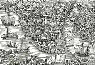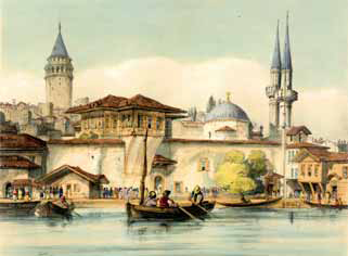 Andrea Vavassore’nin XVI. Yüzyılın başlarında çizdiği İstanbul panoramasında da Porta Schiara olarak belirtilen kapının hemen yanında belli belirsiz yer aldığı görülmektedir. Matrakçı Nasuh’un 1537 tarihli Galata çiziminde Kastellion tou Galatau görülmez. 1581 tarihli “Hünemmame” albümündeki Galata çiziminde de yer almaz. 1590 yılında Habsburg elçisine eşlik eden bir sanatçı tarafından çizildiği söylenen İstanbul panoramasında, Halili Koleksiyonu’nda bulunan Piri Reis kopyasındakine benzer bir yapı görülmektedir. Dikdörtgen planlı yapının konturları iki çizimde de birbirinin aynı gibidir. Esas ilgi çekici olan ise Galata Surları’nın bir burcunun minareye dönüştürülmüş görünüşüdür. Eğer Habsburg elçisinin refakatindeki sanatçı tarafından çizildiği belirtilen bu panoramanın tarihi hakkında herhangi bir yanılgıya düşünülmüyorsa, Kurşunlu Mahzen’in camiye dönüştürülme tarihinin 1716’dan çok daha önce olması gerekir. XV. Ve XVI. yüzyıllara ait bazı kayıtlarda söz konusu yapıdan “Kurşunlu Mağaza” olarak söz edilmektedir. Muhtemelen şehre gelen ithal malların depolandığı ve satışının yapıldığı bu yapı aynı zamanda Büyük Gümrük olarak da kullanılmaktadır.