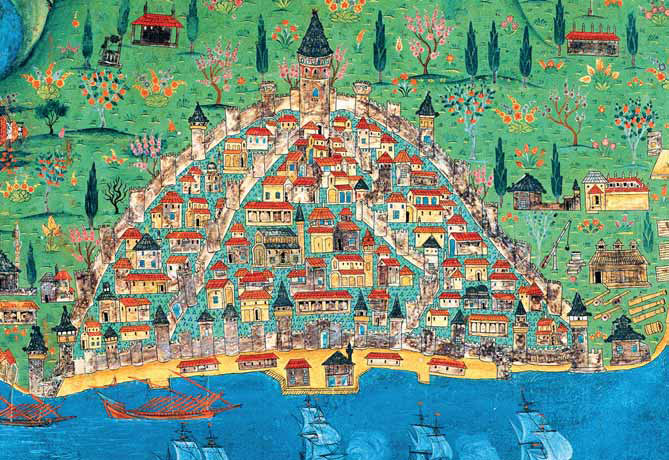 Kastellion tou Galatau, bir başka deyişle Galata Kulesi’nden ayrılabilmesi için Galata Hisarı olarak da niteleyebileceğimiz bu yapı, Piri Reis’in çeşitli kütüphanelerde yer alan çok sayıdaki “Kitab-ı Bahriyye” nüshalarının bazılarında da kendine yer bulur. Berlin Diaz A Foliant 57 numarada kayıtlı nüsha, Londra’da Nasır Halili Koleksiyonu’nda bulunan nüsha ve Atatürk Kitaplığı Muallim Cevdet Koleksiyonu’na kayıtlı nüshada bu yapıya özel bir önem verildiği anlaşılmaktadır.