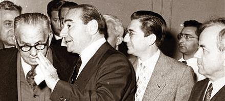 1950’lerde meşhur dinleyicilerinden Başbakan Adnan Menderes ve TBMM başkanlarından Kâzım Özalp ile birlikte.