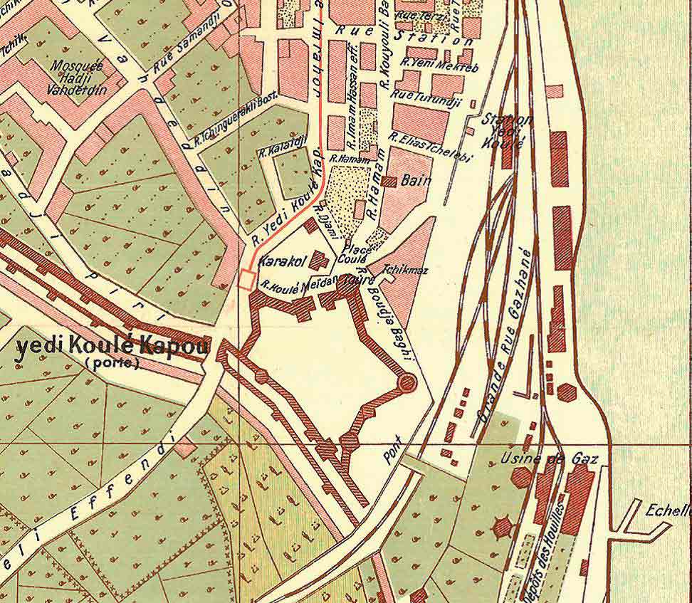 Daha geç döneme ait bazı haritalarda örneğin; 1807 tarihli Kauffer Haritası’nda, hisarın içinde caminin yanı sıra askerlere ait olduğu belirtilen çok sayıda yapı bulunmaktadır (Resim: 13). 1845 tarihli Mühendishane-i Hümayun Haritası’nda hisarın içinde çok sayıda ağaç ile yalnızca mescide ait bir leke yer almaktadır (Resim: 14). 1922 tarihli Necib Bey Haritası’nda ise Yedikule Hisarı’nın içi tümüyle boş olarak gösterilmiştir (Resim: 15).