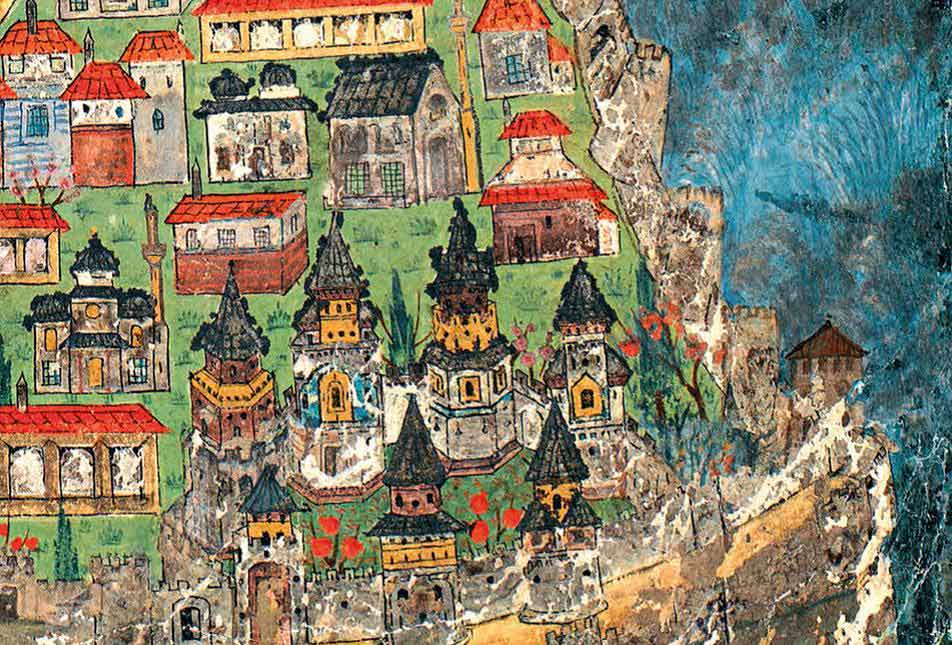 Ancak bu görüntü de surlarla çevrili bir avlunun ortasında çok katlı büyük bir yapı olarak resmedilen kulenin gerçek görüntüsüyle bir benzerliği bulunmamakta olup, kendisine yüklenen hazine ve hapishane fonksiyonunu yansıtan görkemli bir bina olarak tasvir edilmiştir (Resim: 3). 1537 tarihli İstanbul minyatüründe Matrakçı Nasuh da Yedikule’yi resmeder (Resim: 4-5). 1578-1581 yılları arasında İstanbul’u ziyaret eden Saloman Schweigger’de Yedikule ile ilgilenir (Resim: 6). Çoğunluğu XVI. yüzyıl, bazıları XVII. yüzyılda çizilen Piri Reis Haritaları’nda da Yedikule kendine yer bulur (Resim: 7-8). Özellikle Nasser D. Khalili Koleksiyonu’nda bulunan çizimde hisarın içinde mescit ve hemen yanında kırma çatılı muhtemelen Hacı Beşir Ağa’nın yaptırdığı mektep binası ile çok sayıda kiremit örtülü yapının bulunduğu görülmektedir. Yedikule ile ilgili en detaylı görüntülerden biri Venedik Correr Müzesi’nde bulunan bir gravürdür (Resim: 9). Bu çizimde Fatih döneminde yapılan cami ile birlikte çok sayıda konut görülmektedir. Benzer bir çizim ise Viyana Milli Kitaplığı’nda bulunan Francesco Scarella’ya aittir.